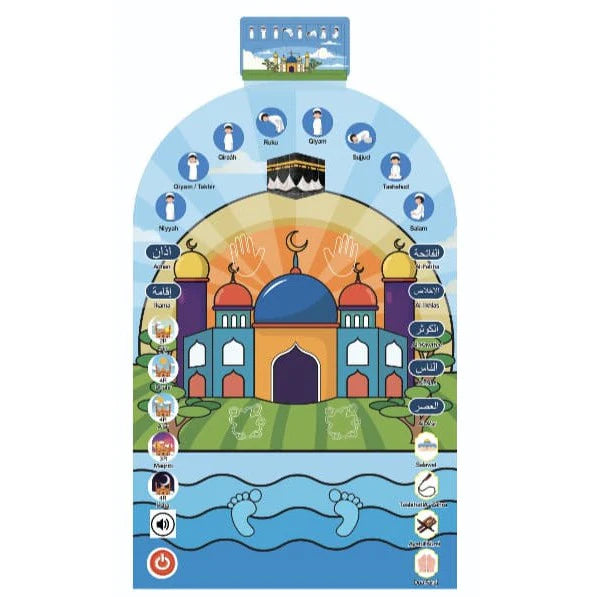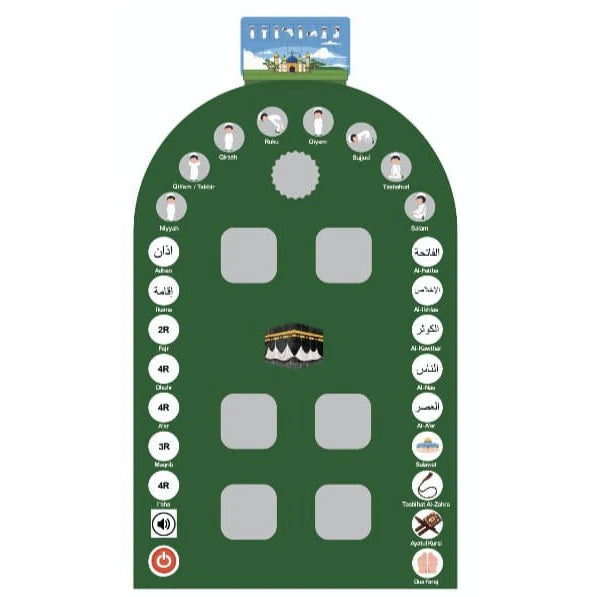 Far more than just a prayer accessory, this interactive mat serves as a comprehensive tool for learning and perfecting Salah, Surahs, Adhan, Duas, and more. Its lightweight, portable design ensures it’s practical for use at home, in the mosque, or while traveling.