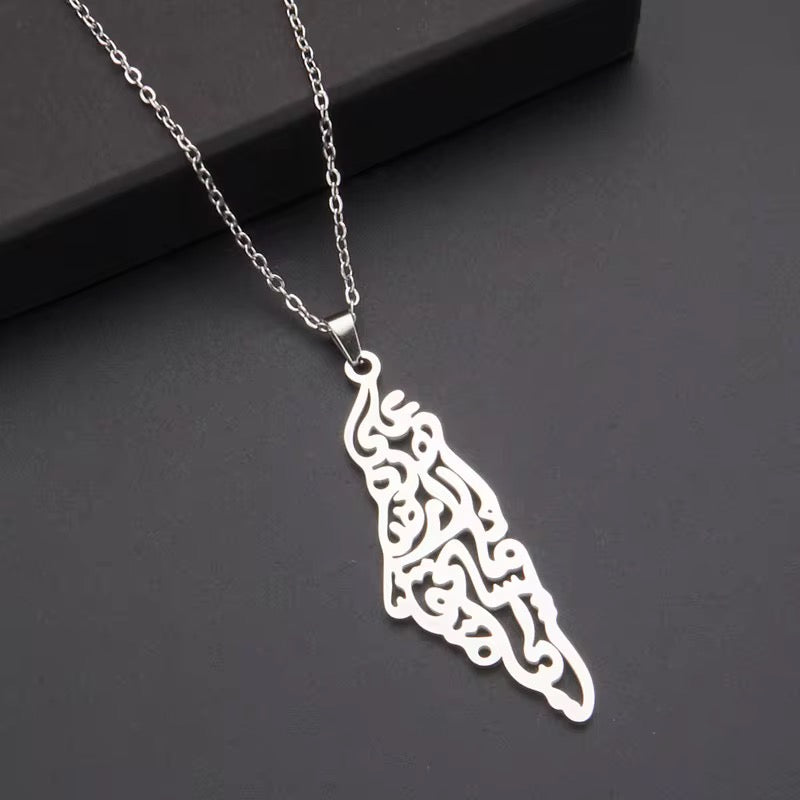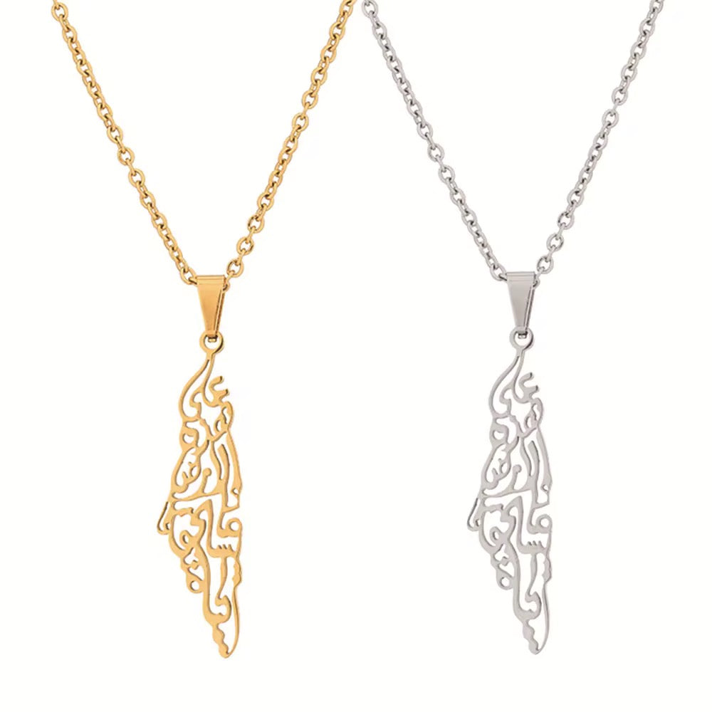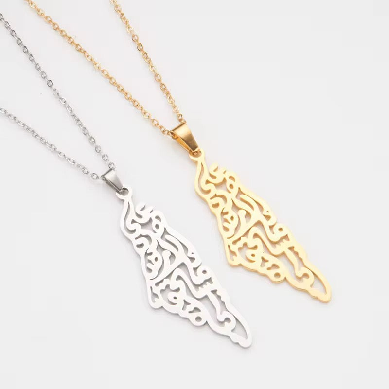 Palestine Map Necklace with Arabic Calligraphy